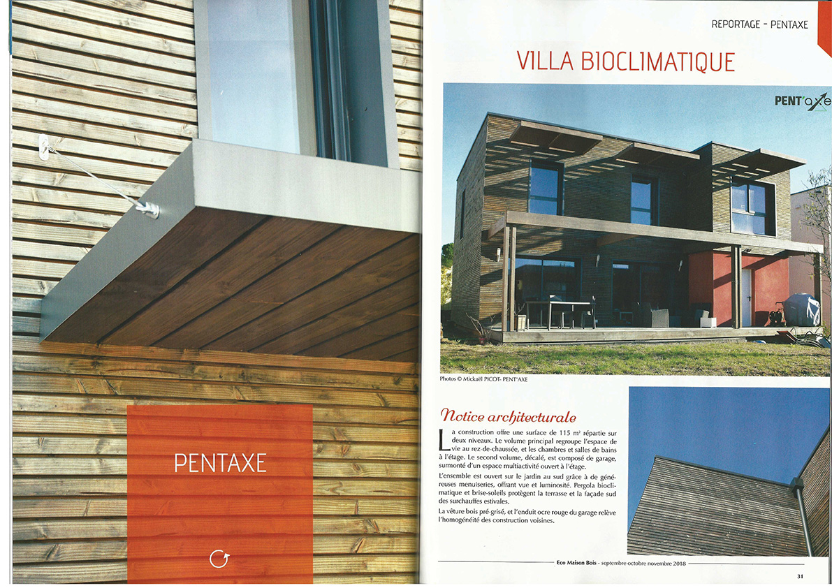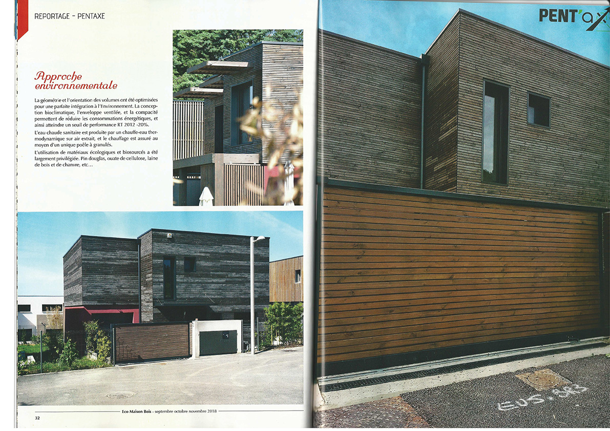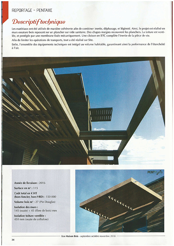 Article de presse d'une réalisation PENT'AXE dans la revue Eco Maison Bois